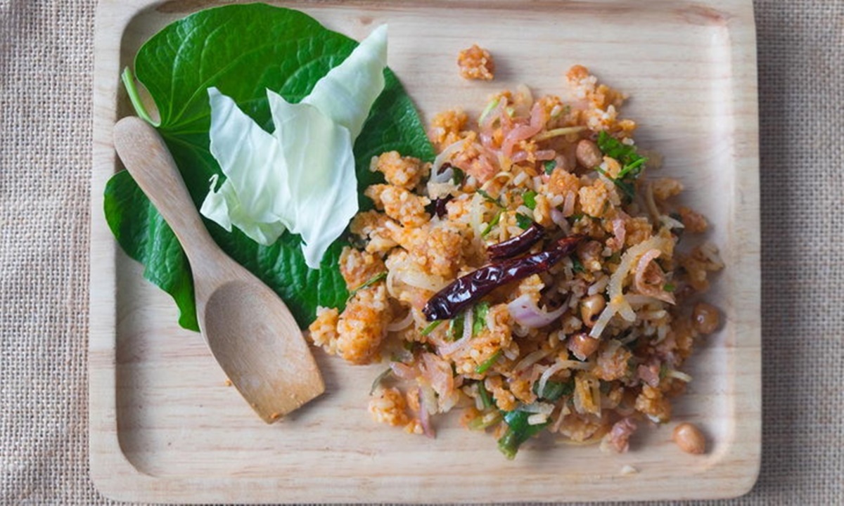 วิธีทำยำข้าวทอดแหนมคลุก