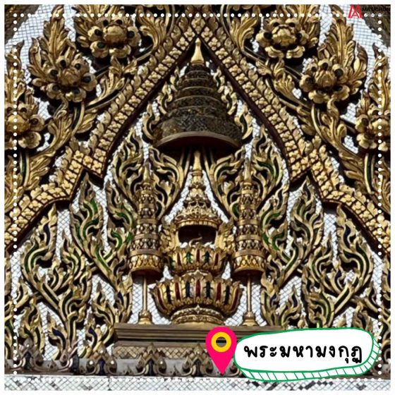 “พระมหามงกุฎ” ที่ประดับบริเวณหน้าบันและด้านบนของซุ้มประตูหน้าต่างอันหมายถึงสัญลักษณ์แทนพระนามเดิมของรัชกาลที่ 4 คือ “เจ้าฟ้ามงกุฎ”