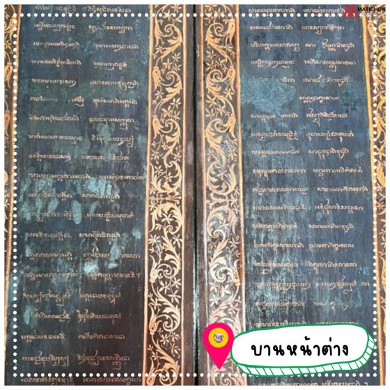 “พระสูตรและพระคาถา” ด้านในบานหน้าต่างและบานประตู เขียนด้วยตัวอักษรขอม แบบตัวบรรจง
