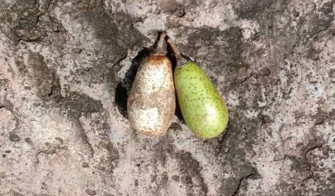 พยอม แต่ไม่มีกลิ่นหอม จะเริ่มออกดอกในช่วงต้นเดือนพฤษภาคม ส่วนผลลักษณะคล้ายลูกมะกอก ขนาดประมาณ 3-5 เซนติเมตร เมื่อสุกประมาณเดือนกุมภาพันธ์-มีนาคม จะหล่นลงมาและแตกออกเป็นสองซีก