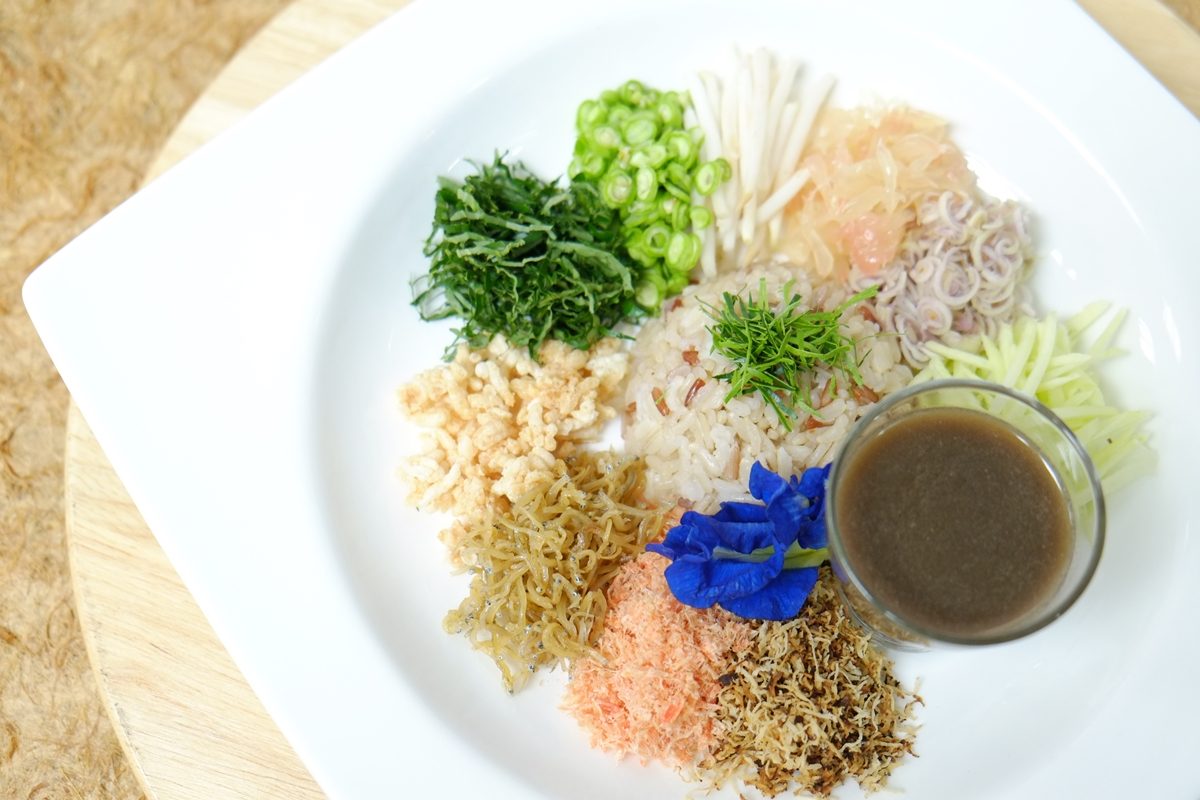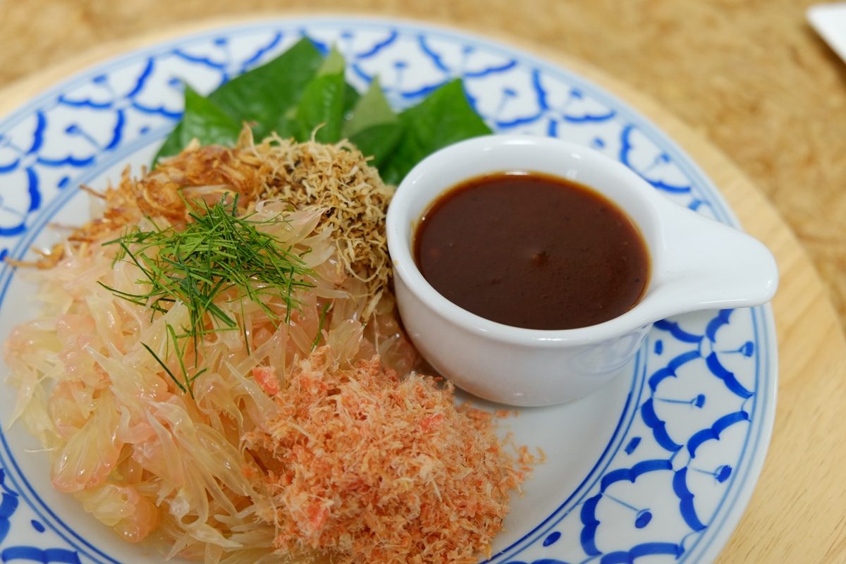เวลามาเรียนก็จะได้ทั้งสองตัว พ่วงมาอีกหนึ่งตัว คือ “เมี่ยงคำ” เรียกน้ำสามรสอีกเหมือนกัน คือมีน้ำปลา น้ำตาล และน้ำมะขามเปียก  “…ต้องบอกว่าเมี่ยงคำก็อยู่ในกลุ่มของพวกเครื่องจิ้ม ถือเป็นอาหารว่างเครื่องจิ้มอีกชนิดหนึ่ง ใช้เครื่องคล้ายกับน้ำปลาหวาน แล้วใส่ส่วนผสมอื่นๆ จะเป็นอะไรบ้างก็แล้วแต่สูตรของใครของมัน ซึ่งอันนี้จะรู้สูตรได้ก็ต้องมาเรียน จากนั้นจะสอนถึงเคล็ดลับต่างๆ เรื่องการเคี่ยว อันนี้สำคัญมาก เพราะถ้าเคี่ยวใสเกินไปก็ไม่อร่อย จิ้มไม่ติด แต่ถ้าข้นเกินไปก็จะตกทราย…”