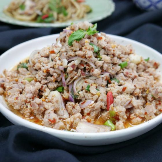 ส่วนลาบก็อาจมีดีเทลที่ต้องเข้าใจ เช่น ลาบเป็ดต้องเพิ่มกระเทียมเจียว หอมเจียว ใบมะกรูดซอย พริกทอด ใบมะกรูดทอด ถ้าเป็นลาบปลาดุกก็ต้องมีข่าสับไปในเนื้อปลาดุก เพราะปลาจะมีความคาวเล็กๆ ซอยใบมะกรูดใส่หน่อย เป็นต้น และ หากเข้าใจลาบแล้วก็ไปต่อยอดทำน้ำตกได้เช่นกัน เพราะมีเบสเดียวกัน