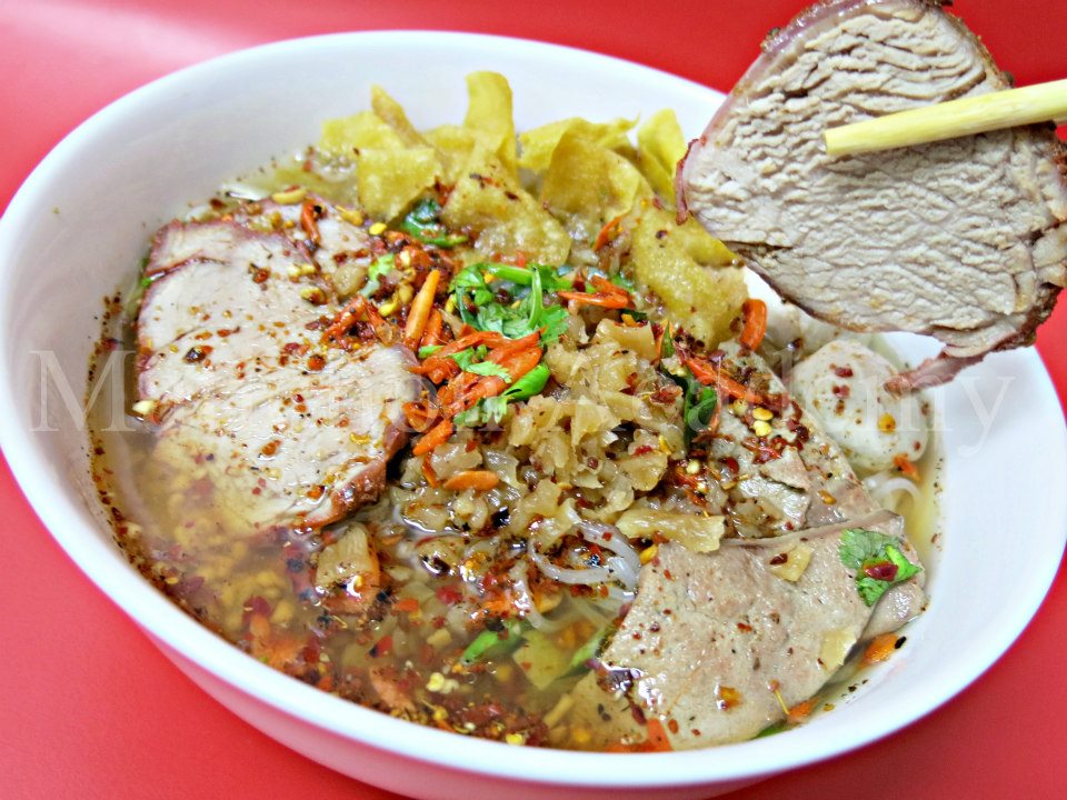 นอกเหนือจากน้ำซุปสูตรพิเศษแล้ว ยังมีทีเด็ดอยู่ที่ “หมูแดง”