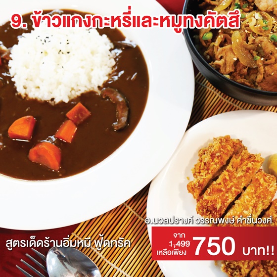 9. ข้าวแกงกะหรี่และหมูทงคัตสึ สูตรเด็ดร้านอิ่มหมี ฟู้ดทรัค สอนโดย อ.นวลปรางค์ วรรณพงษ์ คำชื่นวงศ์ จาก 1,499 บาท เหลือเพียง 750 บาท
