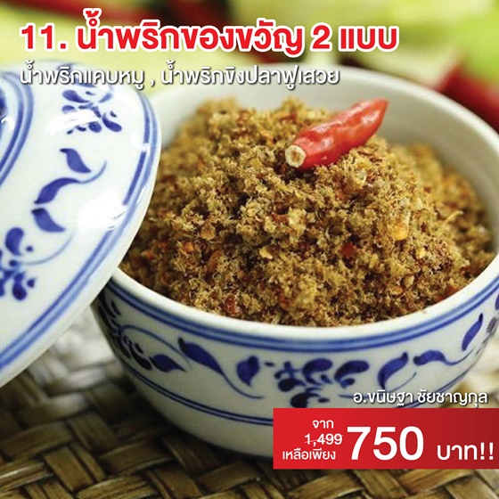 11. น้ำพริกของขวัญ 2 แบบ น้ำพริกแคบหมู , น้ำพริกขิงปลาฟูเสวย 🧄 สอนโดย อ.ขนิษฐา ชัยชาญกุล จาก 1,499 บาท เหลือเพียง 750 บาท