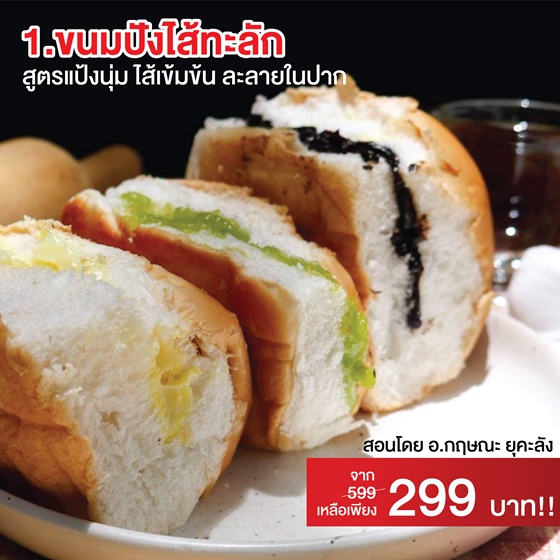 1. ขนมปังไส้ทะลัก สูตรแป้งนุ่ม ไส้เข้มข้น ละลายในปาก สอนโดย อ.กฤษณะ ยุคะลัง จาก 599 บาท เหลือเพียง 299 บาท