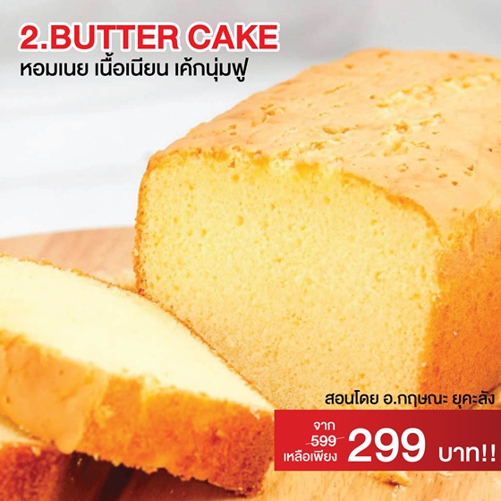 2. BUTTER CAKE หอมเนย เนื้อเนียน เค้กนุ่มฟู สอน โดย อ.กฤษณะ ยุคะลัง จาก 599 บาท เหลือเพียง 299 บาท