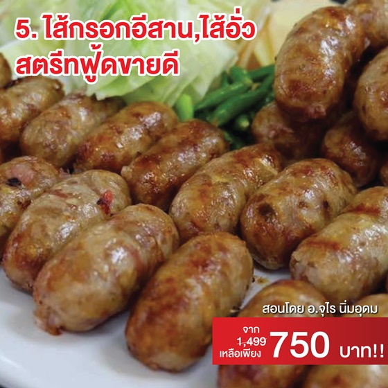 5. ไส้กรอกอีสาน,ไส้อั่ว สตรีทฟู้ดขายดี สอนโดย อ.จุไร นิ่มอุดม จาก 1,499 บาท เหลือเพียง 750 บาท