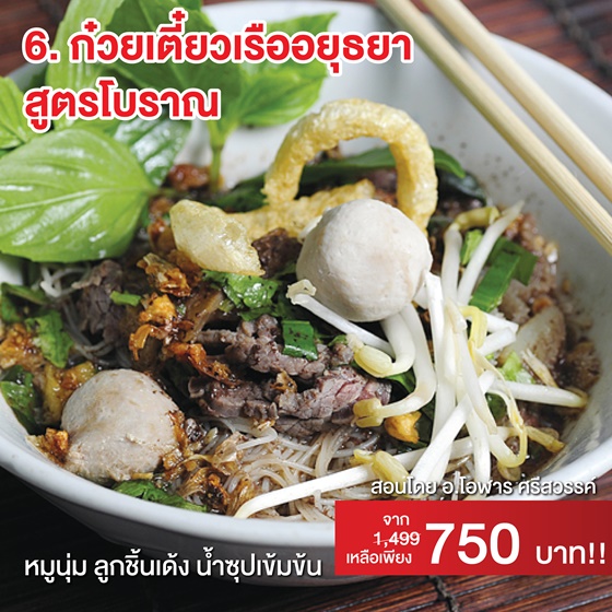 6. ก๋วยเตี๋ยวเรืออยุธยา สูตรโบราณ สอนโดย อ.โอฬาร ศรีสวรรค์ จาก 1,499 บาท เหลือเพียง 750 บาท