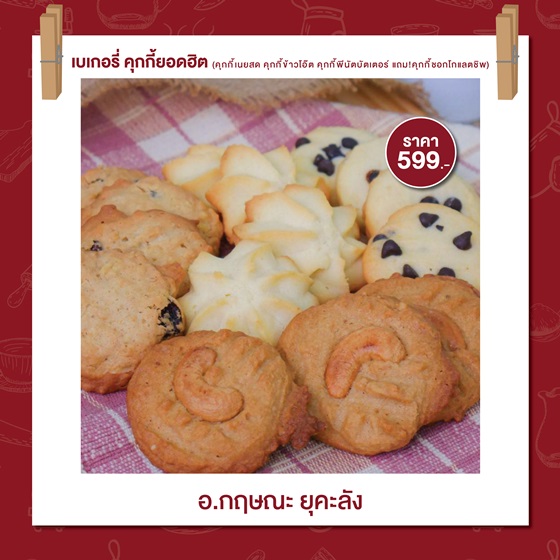 2.คุกกี้ยอดฮิต สอนทำคุกกี้ขายดี3แบบ คุกกี้เนยสด คุกกี้ข้าวโอ๊ต คุกกี้พีนัตบัตเตอร์ แถม!คุกกี้ชอกโกแลตชิพ สอนโดย อ.กฤษณะ ยุคะลัง ราคาเพียง 599 บาท