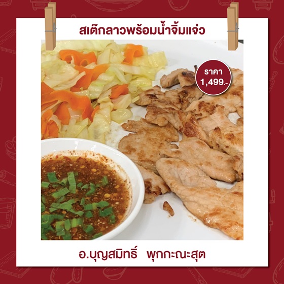 4.สเต๊กลาว สูตรหมูนุ่มกับน้ำจิ้มแจ่วสูตรเด็ด ขายง่ายกำไรดี สอนโดย เชฟบุ๊ค หรือ อ.บุญสมิทธิ์ พุกกะณะสุต พิธีกรรายการทำอาหารสไตล์ฟิวชัน Foodwork ราคา 1,499 บาท