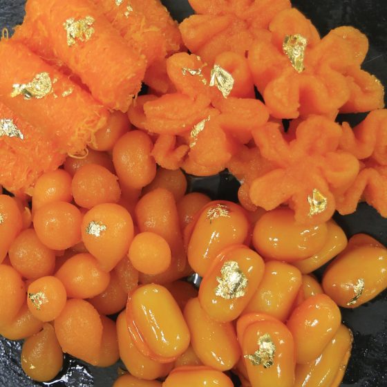 ส่วนใครที่อยากได้สูตรอร่อย ขนมไทยตำรับท้าวทองกีบม้าต้องเรียน หลักสูตรขนมเครื่องทองไทยมงคล (ทองหยิบ ทองหยอด ฝอยทอง เม็ดขนุน)  สอนโดย อ.เต็มสิริ รังหอม วันเสาร์ที่ 15 มกราคม 2565 ราคา 2,140 บาท