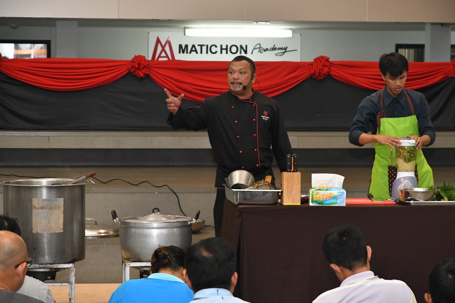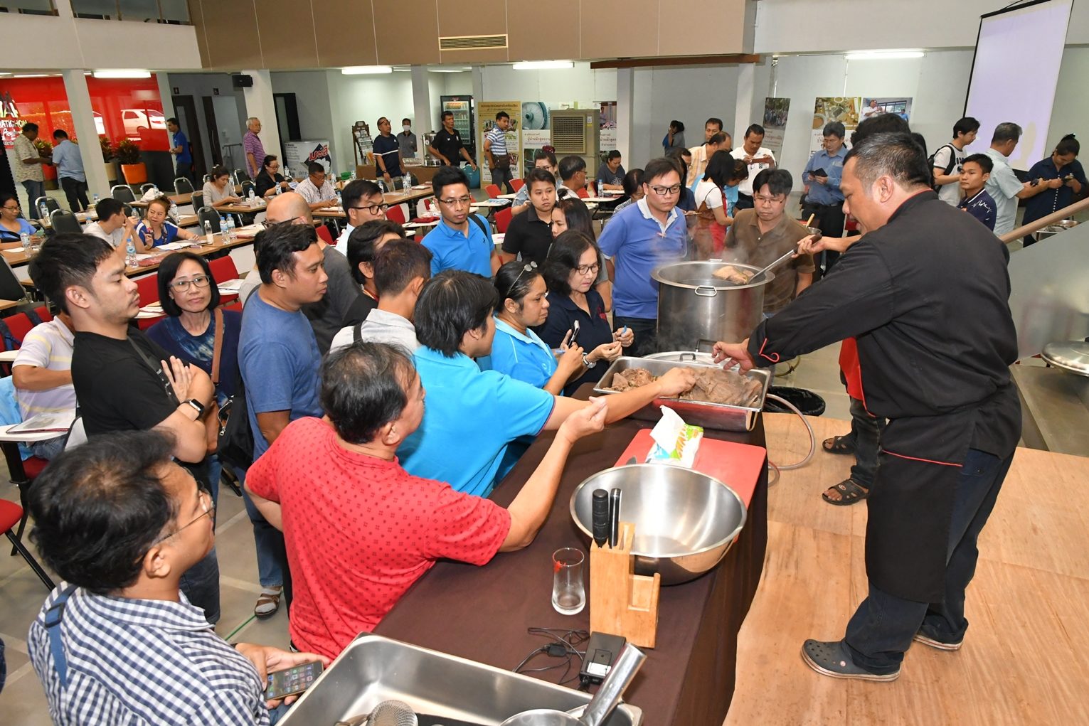 โดยบรรยากาศการเรียนการสอนเป็นไปอย่างคึกคัก อ.อำนาจ เริ่มเล่าให้ฟังถึงที่มาที่ไปของสูตรก๋วยเตี๋ยวเนื้อ ที่กว่าจะได้มาต้องอาศัยการลองผิดลองถูกด้วยตัวเอง จากนั้นจึงเข้าสู่ช่วงการสอน ที่เริ่มอธิบายให้ฟังตั้งแต่การเลือกขนาดหม้อที่เหมาะสมสำหรับผู้ประกอบการหน้าใหม่ ปริมาณน้ำที่ควรใส่ ชนิดของน้ำที่ใช้ในการทำน้ำซุป