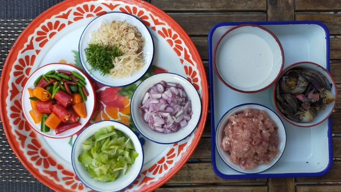 ส่วนเนื้อหลนนั้น เราอาศัยหมูสับครับ ส่วนใครจะผสมกุ้งทะเลสับ เนื้อปูแกะ หรือปลาหมึกหั่นชิ้นเล็กๆ ก็ตามทุนทรัพย์ของแต่ละท่าน