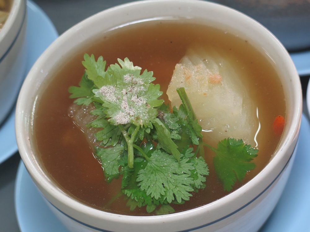 เป็ดพะโล้และห่านพะโล้ต้องกินคู่กับน้ำแกงต่างๆ ตุ๋นใส่โถอุ่นร้อนอยู่ในลังถึงตลอดเวลา (โถละ 100 บาท) มีตั้งแต่ ต้มมะระซี่โครงหมู ต้มผักเสฉวนซี่โครงหมู (ของโปรด) ต้มดอกไม้จีนซี่โครงหมู ต้มหัวไชเท้าซี่โครงหมู และ เป็ดตุ๋นฟักมะนาวดอง สำหรับคนที่ชอบรสเปรี้ยวอมหวานหอมเป็นเอกลักษณ์ของมะนาวดอง