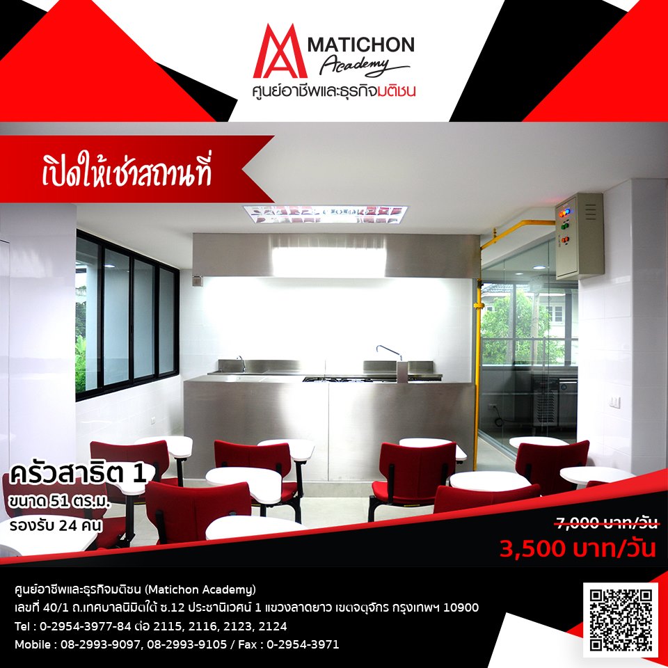 ครัวสาธิต1 ขนาด 51 ตร.ม. รองรับ 24 คน ราคา 7,000 บาท/วัน เหลือ 3,500 บาท/วัน