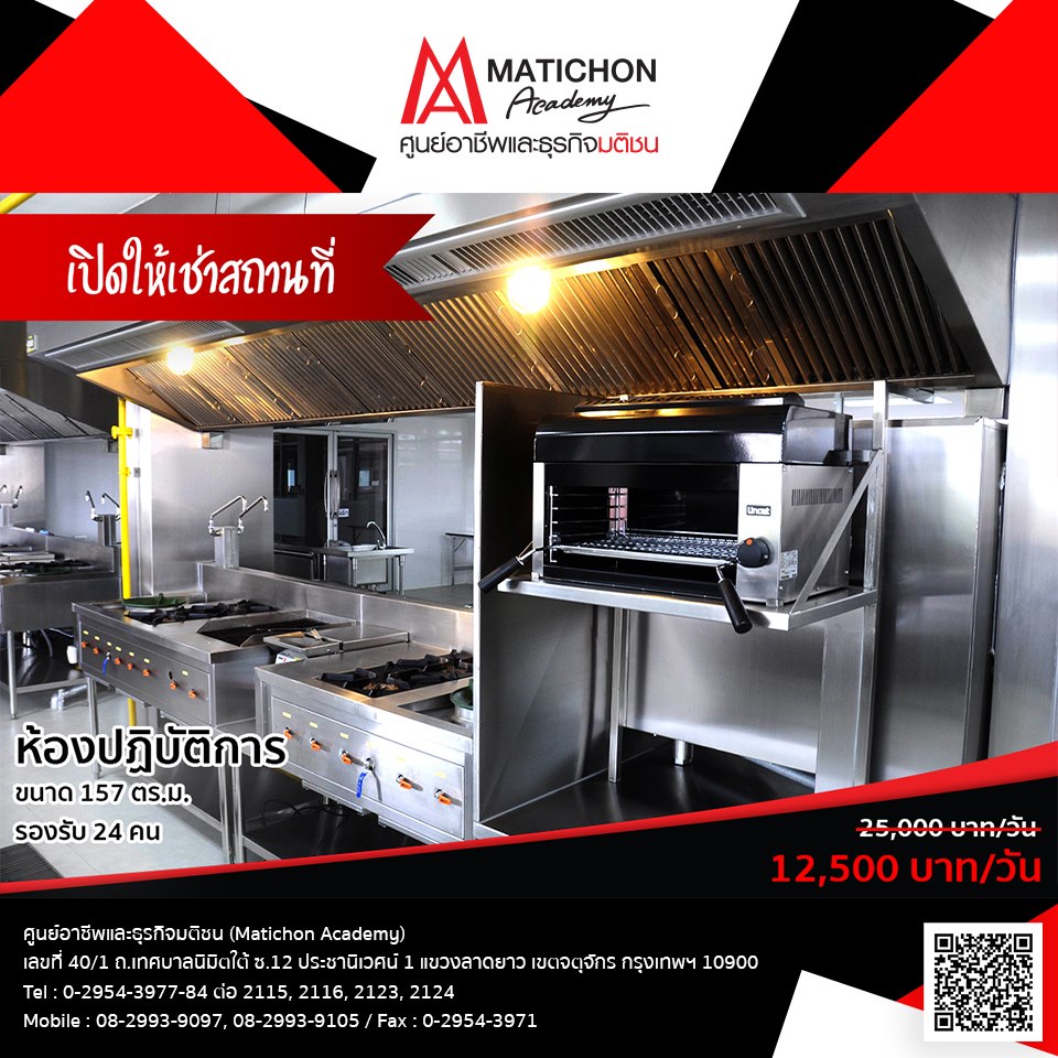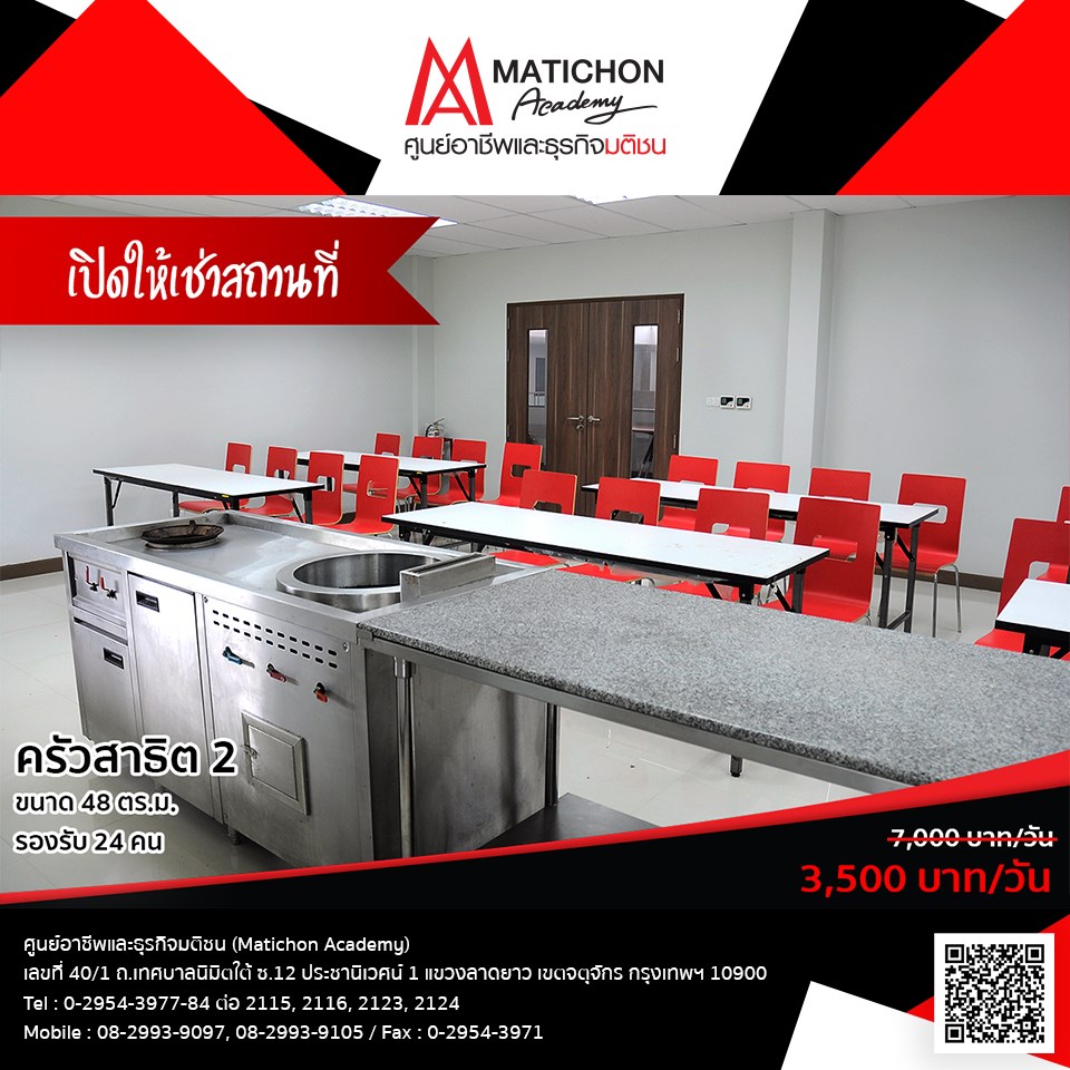 ครัวสาธิต2 ขนาด 48 ตร.ม. รองรับ 24 คน ราคา 7,000 บาท/วัน เหลือ 3,500 บาท/วัน