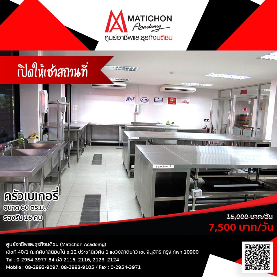 ครัวเบเกอรี่ ขนาด 60 ตร.ม. รองรับ 16 คน ราคา 15,000 บาท เหลือ 7,500 บาท