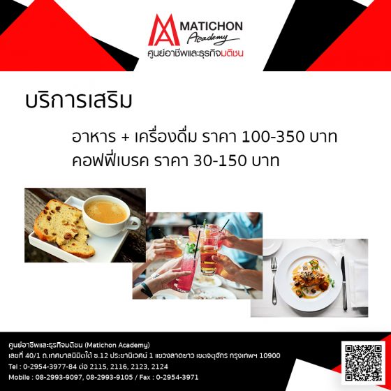 บริการเสริม อาหาร+เครื่องดื่ม ราคา 100-350 บาท คอฟฟี่เบรค ราคา 30-150 บาท