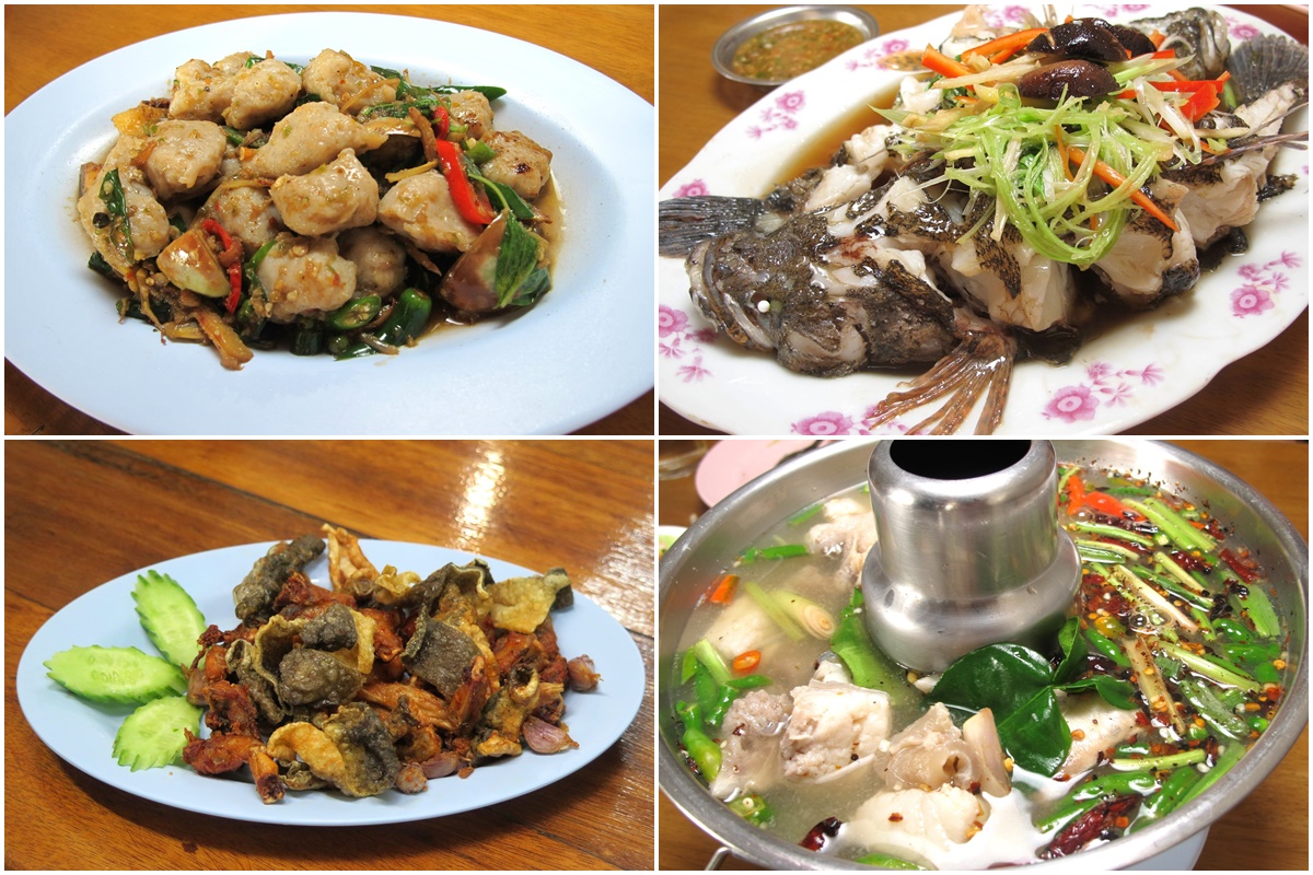 แนะนำ หมูกรอบคั่ว ปลาบู่นึ่งซีอิ๊ว ต้มยำปลาม้า ไส้อ่อนผัดพริกแกง ลูกชิ้นปลากรายผัดขี้เมา ปลาม้าสามรส ปลาซิวทอด กบทอดกระเทียม ผัดแขนงคะน้าหมูกรอบ