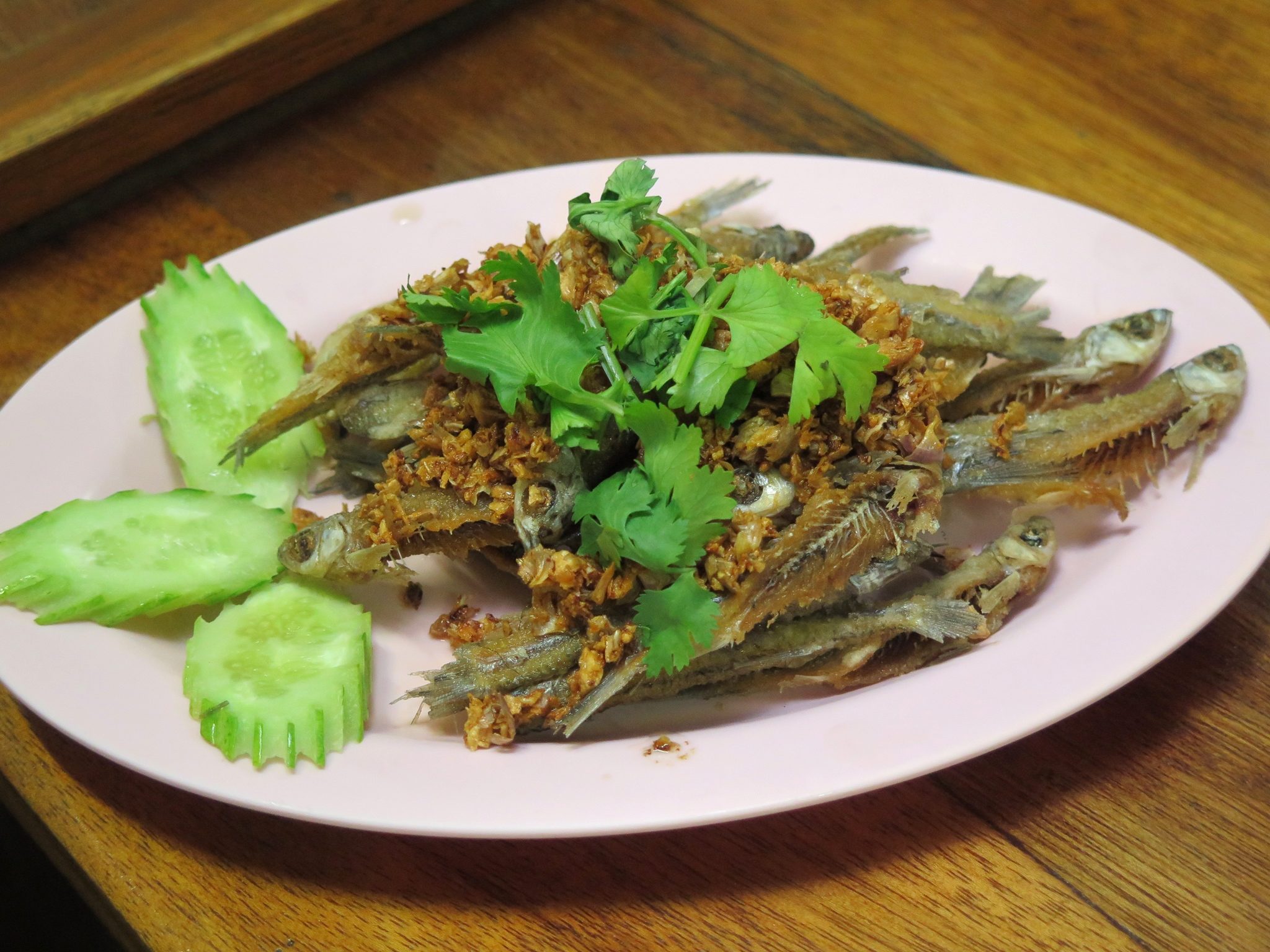 มีของกินเล่นง่ายๆ ปลาซิวทอด (120 บาท) ปลาซิวแม่น้ำที่นี่ตัวโตได้ใจ ทอดกรอบๆ เค็มๆ นิดๆ กำลังดี กินได้ทั้งตัวไม่เหลือแม้แต่ก้าง นอกจากนี้ยังมีอาหารจานปลาอื่นๆ อีกหลากหลาย เช่น ปลาเค้าทอดน้ำปลา ฉู่ฉี่ปลาเนื้ออ่อน ปลาคังลวกและผัดฉ่า