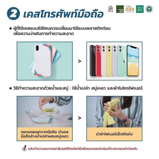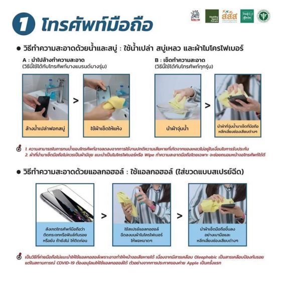 โทรศัพท์มือถือ นับว่าเป็นสิ่งที่คนเราส่วนใหญ่ใช้งานเป็นประจำ การที่เราใช้มือสัมผัสแทบจะตลอดเวลานั้น ส่งผลให้โทรศัพท์มือถือเป็นแหล่งสะสมของเชื้อโรคมากที่สุด วันนี้เราขอเสนอวิธีทำความสะอาดโทรศัพท์มือถืออย่างปลอดภัย ไร้โควิด-19 ซึ่งมีวิธีปฏิบัติได้ ดังนี้