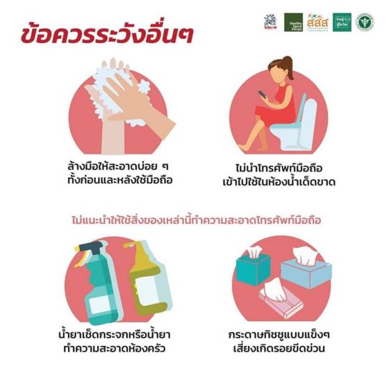 – ล้างมือให้สะอาดบ่อย ๆ ทั้งก่อนและหลังใช้มือถือ