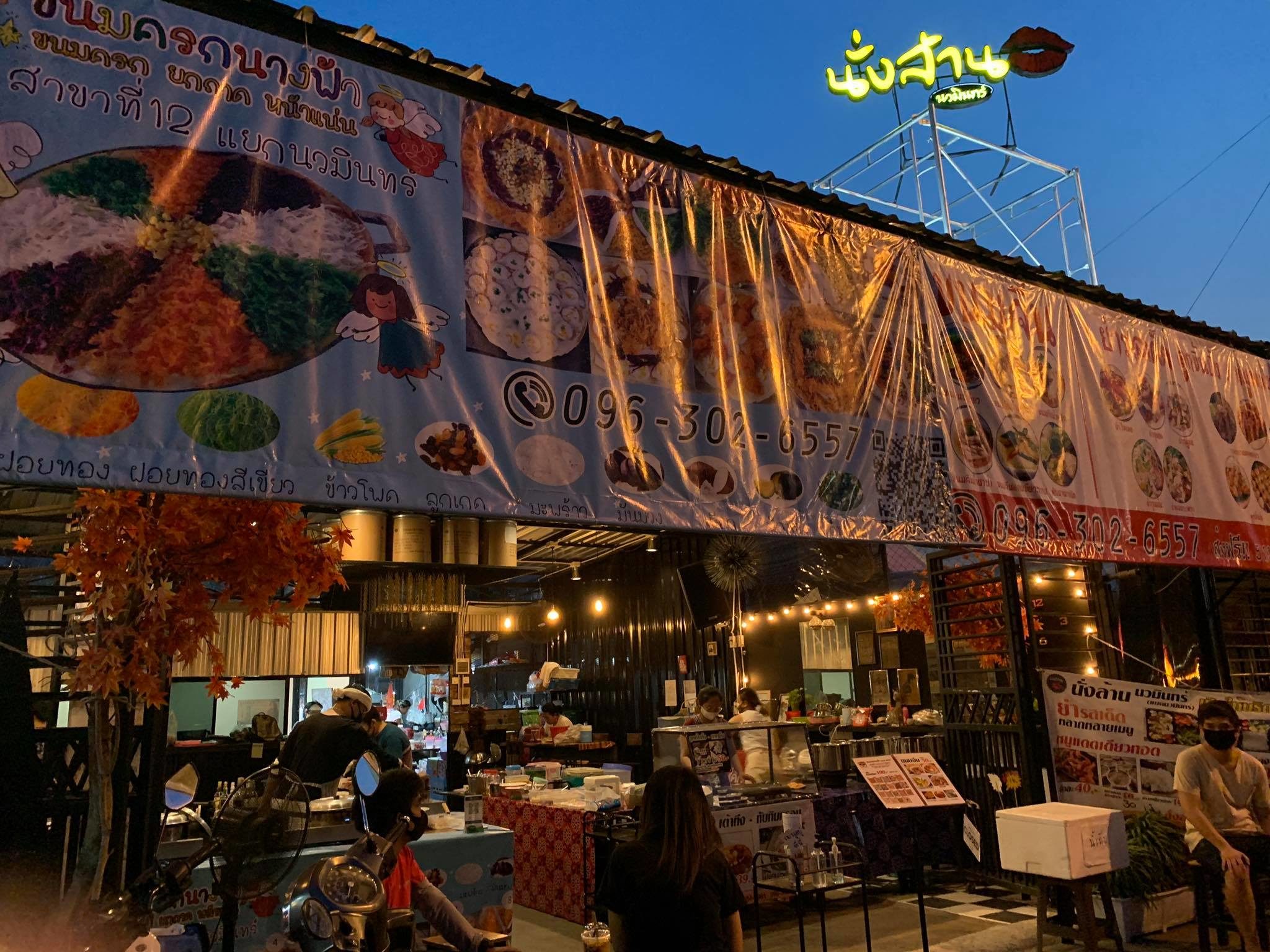 เมื่อตัดสินใจว่าจะ “ทำอาหารขาย” สิ่งที่ต้องคิดต่อ คือ แล้วจะขายที่ไหน ซึ่งโจทย์ข้อนี้ “อัมรินทร์” ได้ “ธฤษณัช เรือนเงิน” เพื่อนไกด์รุ่นน้อง มาช่วยคลี่คลาย เนื่องจาก “ธฤษณัช” ได้เช่าร้านอาหารกลางคืนชื่อ “นั่งล้าน” บนถนนเกษตร-นวมินทร์ ไว้ทำเป็นอาชีพเสริมได้เกือบ 2 ปี แล้ว