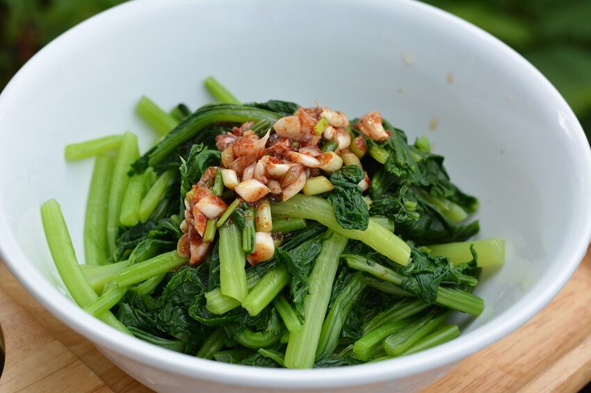 ผักอื่นๆ ที่สามารถใช้วิธียำแบบนี้ ได้แก่ “ซุกก๊าต” 쑥갓 คือผักตั้งโอ๋ของเกาหลี ใบจะมีรอยหยักเยอะกว่าตั้งโอ๋จีนแบบที่เรากินกัน เวลาฉันพูดถึงตั้งโอ๋ก็หมายถึง “ตั้งโอ๋” หรือ “ตั่งออ” จริงๆ นะ ไม่ใช่ผักขึ้นฉ่ายที่เรียกผิดเป็นตั้งโอ๋ ฉันก็ไม่เข้าใจว่าใครเป็นคนเริ่ม แต่มันสามารถทำให้คนปลูกผักไปจนถึงแม่ค้าทุกตลาดในประเทศเรียกผิดกันหมด