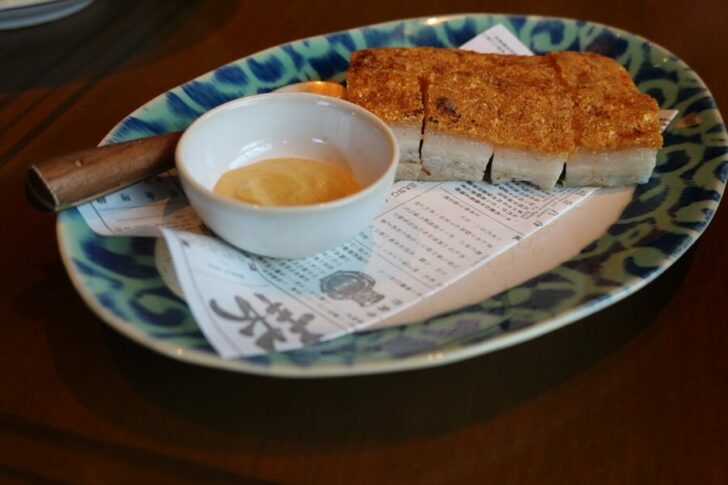 อีกอย่างที่ชอบมากคือ สลัดแมงกะพรุนเย็น (Chilled Jelly Fish Salad) (480 ++) แมงกะพรุนยำกับผักกาดขาวของจีนใช้เฉพาะส่วนก้านกรอบๆ ปรุงรสด้วยน้ำส้มสายชูหมักจากข้าวและน้ำมันมัสตาร์ดกับพริกแห้ง ได้รสเปรี้ยวหอมและรสสัมผัสกรอบเด้งของแมงกะพรุน