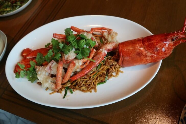 ปิดท้ายเมนูอาหารจีนจานเส้นอลังการ แคนาเดียนล็อบสเตอร์กับเส้นบะหมี่ผัดกับซอสซีฟู้ดใส่หอยเชลล์แห้งและซีอิ๊วสูตรเชฟแมทธิว เกง (350 ++ ต่อ 100 กรัม) เส้นบะหมี่เป็นเส้นสดใช้มีดตัด (Hand cut) เดี๋ยวนั้น ใครชอบเมนูเส้นยังมีเส้นสดชนิดดึงเส้นด้วยมืออีกด้วย