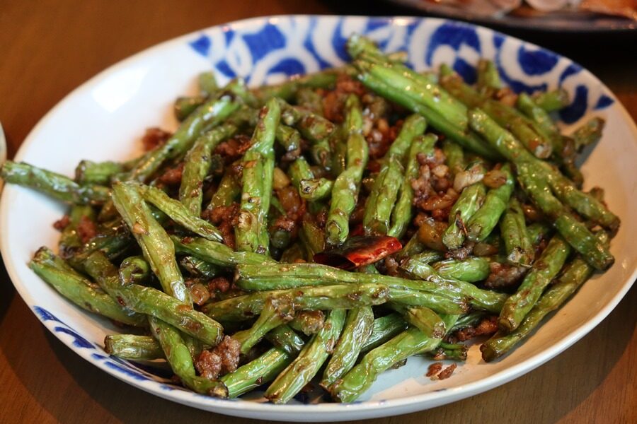 ถั่วแขก(String Beans)ผัดกับหมูสับและพริกแห้ง