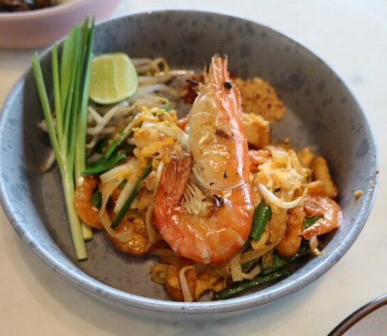 เดินมาอีกด้าน ที่นี่ฝีมือการตำส้มตำเยี่ยมยอดมาก ปิ่นโตเถาเล็กชอบสั่งตำปูปลาร้า นอกจากนี้ ก็มีตำไทยไข่เค็ม ตำปู ตำไทย และตำไทยปู ซึ่งของอร่อยตรงนี้ยังมีผัดไทยกุ้งแม่น้ำอีกด้วย หรือจะสั่งกุ้งแม่น้ำย่างจิ้มน้ำจิ้มซีฟู้ดแซ่บๆ ก็กินได้ไม่อั้น