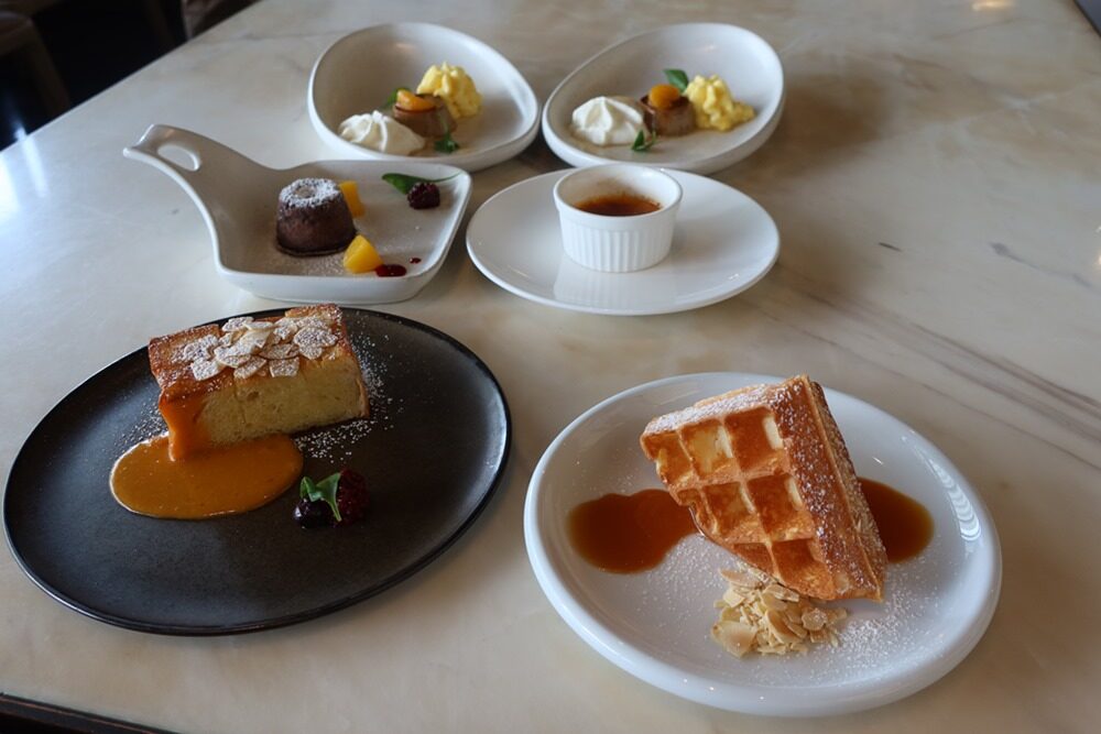 อย่าเพิ่งอิ่มนะจ๊ะมีขนมหวานอีกเพียบ ทั้งฮันนีบริยอชโทสต์ซอสไข่เค็ม ช็อกโกแลตลาวาเยิ้มๆ วาฟเฟิลคาราเมลซอส แครมบรูเล่หอมคาราเมล ขนมโคแบบไทยๆ และไอศกรีมหลากรสชาติ รวมทั้งผลไม้สับปะรดกับแตงโม