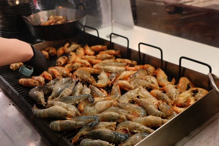 ที่นี่มีเมนูน่าลิ้มลองเพียบมากมาย ไลน์บุฟเฟต์เป็นครัวเปิดมีที่กั้นกระจกใสเห็นกันจะๆ ให้มาที่มุมซุป ห้ามพลาดซุปเห็ดทรัฟเฟิลในตำนานครีมข้นอร่อยขั้นเทพ หอมกลิ่นทรัฟเฟิล กินคู่กับขนมปังกระเทียม ใกล้กันเป็นมุมอาหารไทย ขอแนะนำตัวเด็ดเมนูใหม่ ขนมจีนน้ำยาปูใบชะพลู ถัดมาตรงหัวมุมมีซีฟู้ดวางบนน้ำแข็ง หอยนางรมสุราษฎร์ธานีเป็นตัวเด่นเสิร์ฟทีละ 2 ตัว อีกทั้งหอยแมลงภู่นิวซีแลนด์กับกุ้งขาว