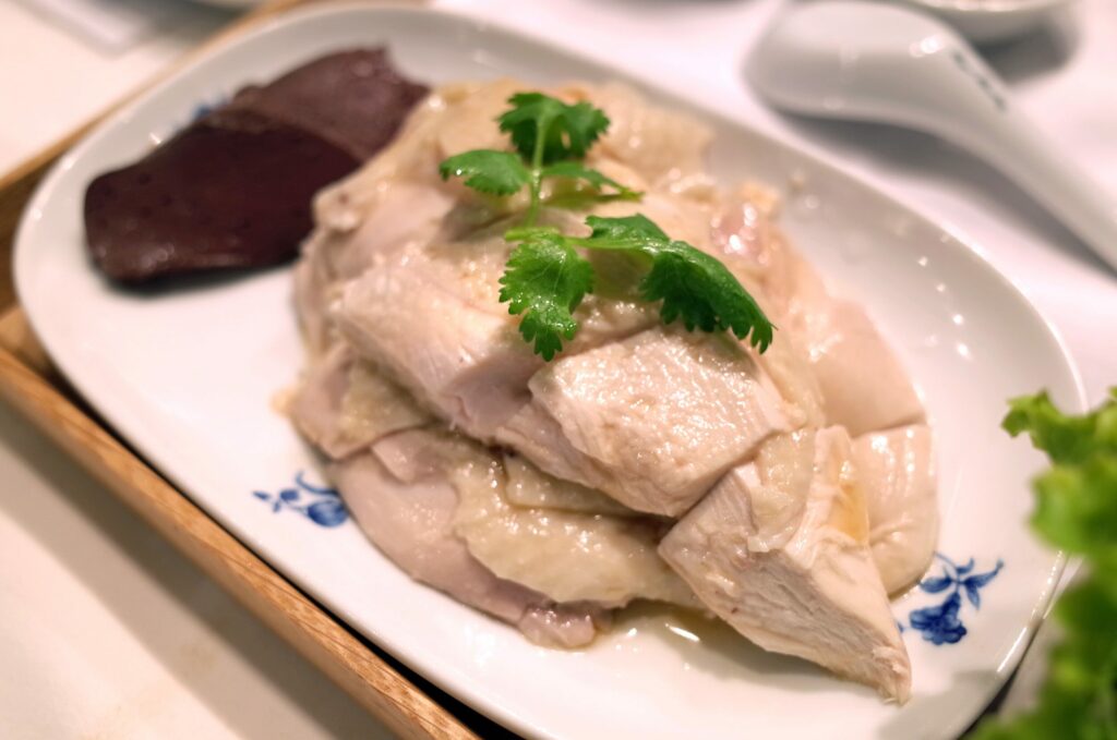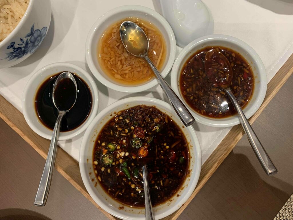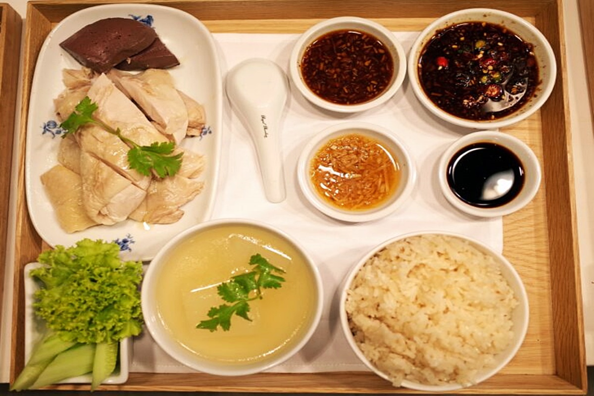 เริ่มต้นที่ “ข้าวมันไก่” กันก่อน ชุดนี้ราคาอยู่ที่ 320 บาท หลายคนถามว่าคุ้มค่าคุ้มราคาไหม ต้องบอกว่าเกินคุ้มค่ะ กะด้วยสายตา กินได้ 2 คนอิ่ม ข้าวพูนถ้วย ไก่ชิ้นหนาวางมาในจานเปล น้ำซุป ผัก และน้ำจิ้ม 4 แบบ