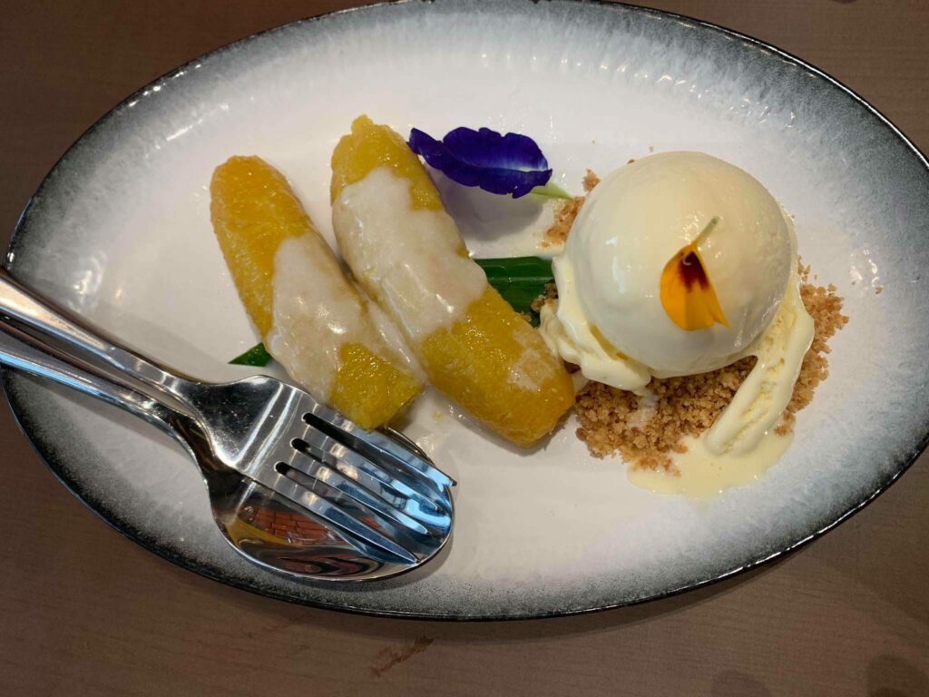 สำหรับขนมหวานก็ทีเด็ดไม่แพ้กัน แนะนำให้ลอง บัวลอยเผือกมะพร้าวอ่อน 120 บาท รสชาติหอมหวานกำลังดี กับกล้วยไข่เชื่อมไอศกรีม ก็เป็นการจับคู่ที่ลงตัวมากๆ