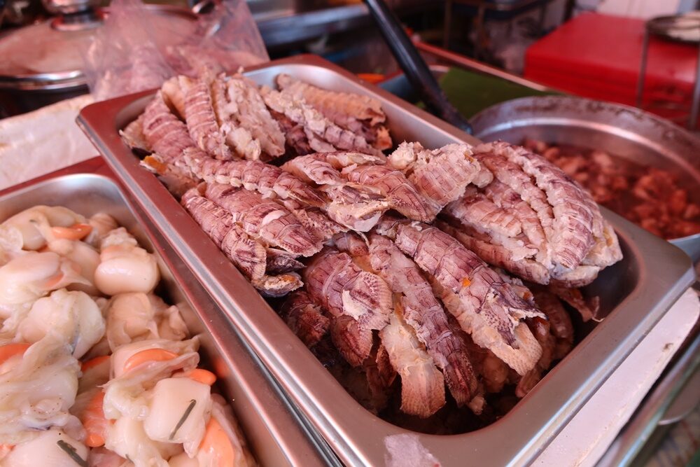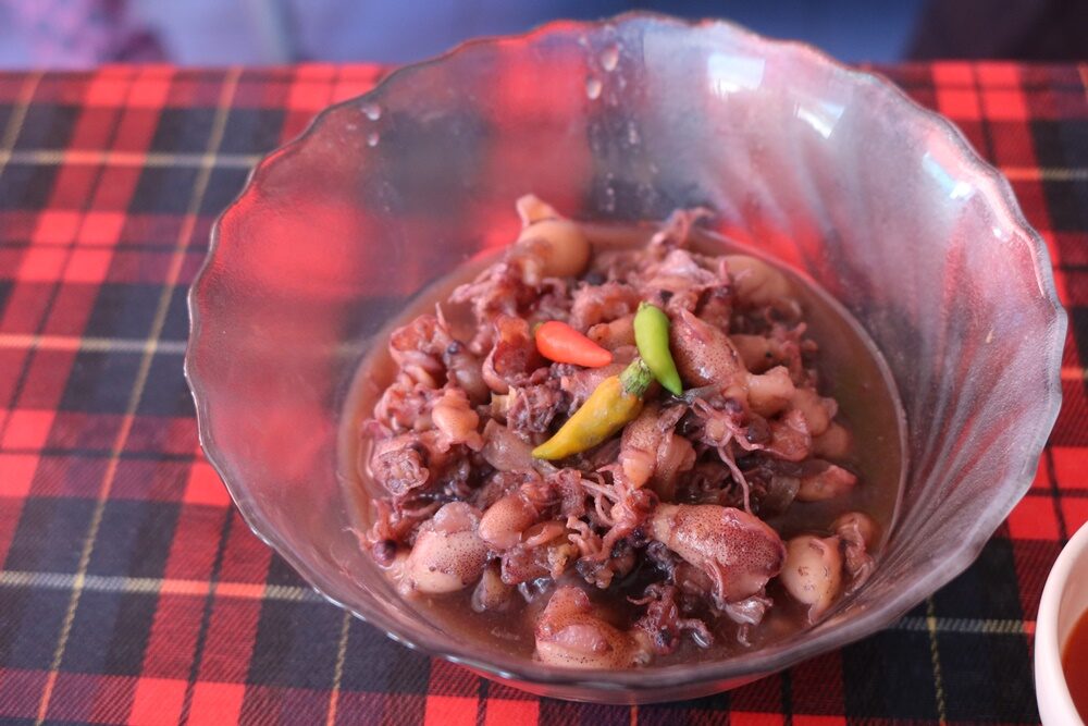 วันนั้นเจ้จิ๋วได้ปลากระบอกสดๆ มาเป็นพิเศษ จึงทำต้มส้มปลากระบอกให้ด้วย (150 บาท) ของดีตามฤดูกาลอีกอย่างคือหมึกกะต่อมต้มหวาน (วันนั้นได้มา 1.6 กิโลกรัม 650 บาท) เจ้จิ๋วบอกว่าตัวจะเล็กกว่าหมึกกะตอย เนื้อเด้งสดมากๆ เอามาต้มน้ำดำปรุงรสหวานเล็กน้อย