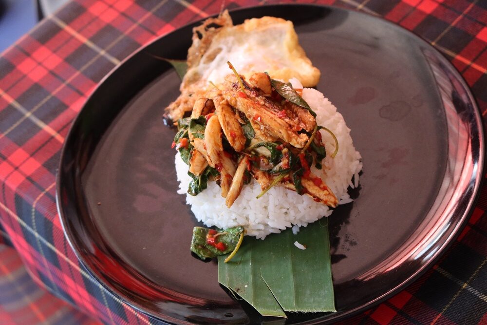 มีเมนูง่ายๆ ที่ห้ามพลาดเป็นอันขาด คือข้าวกะเพราปู (60 บาท ใส่ไข่ดาวเพิ่ม 10 บาท) เจ๊จิ๋วรสมือดีปรุงได้รสจัดถูกใจ ก้ามปูอ่อนเคี้ยวได้ทั้งชิ้นไม่มีแกนกลางให้เสียอารมณ์ ถ้าสั่งข้าวราดกะเพรากั้งหรือหมึก กุ้ง หอย คิดแค่จานละ 40 บาท เท่านั้น (ผสมกันคิด 60 บาท ไม่รวมปู)