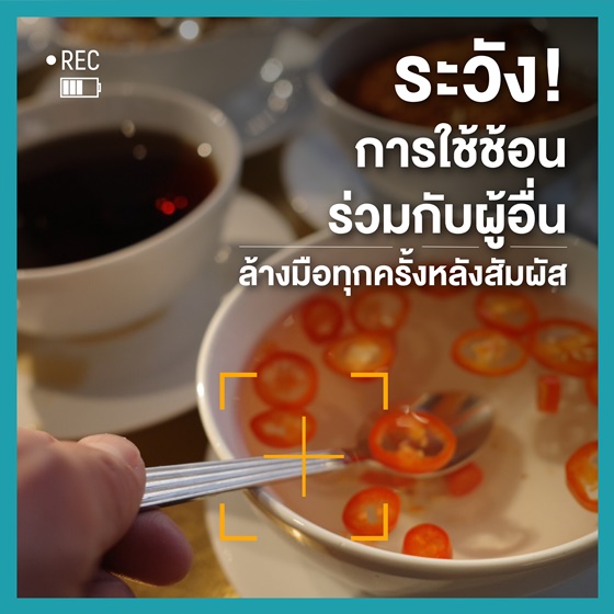 3.หากมีความจำเป็นต้องใช้ช้อนกลางร่วมกับผู้อื่น ควรล้างมือให้สะอาดทุกครั้ง หรือ ทำความสะอาดมือทันทีด้วยเจลแอลกออฮอล์ เพื่อป้องกันการนำเชื้อโรคที่ติดอยู่บนช้อนเข้าสู่ร่างกาย