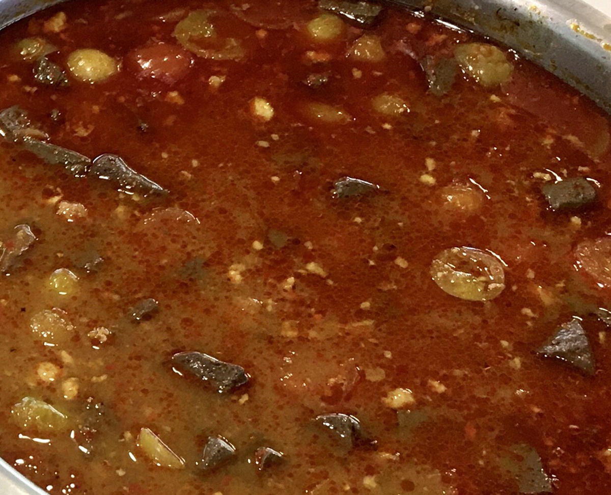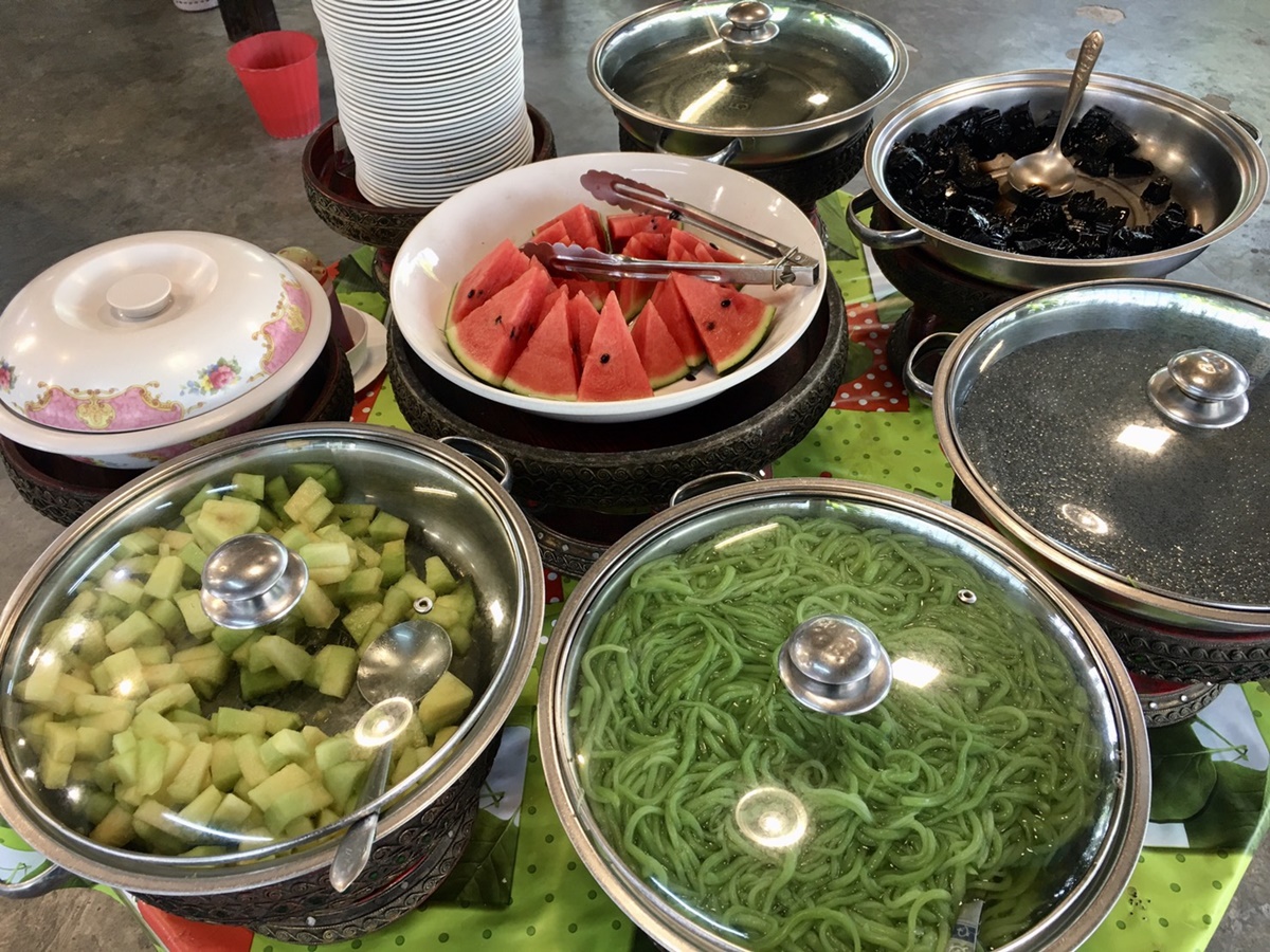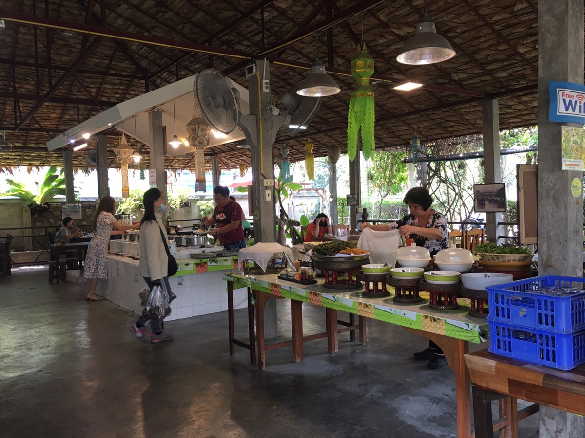ร้านนี้เขาขายขนมจีนแบบบุฟเฟ่ต์ ราคาหัวละ 90 บาท ใครอยากกินเท่าไหร่ก็กินได้ กินไปเลย เติมได้ตลอด โดยทางร้านจะจัดวางน้ำขนมจีนไว้ซุ้มหนึ่ง มีทั้งหมด 8 น้ำ ได้แก่ น้ำยากะทิ น้ำยาป่า น้ำพริก แกงเขียวหวานหน่อไม้ แกงเขียวหวานมะเขือเปราะ แกงไตปลา น้ำเงี้ยว และขนมจีนซาวน้ำ ซึ่งหากินได้ยาก เพราะไม่ค่อยมีคนทำ