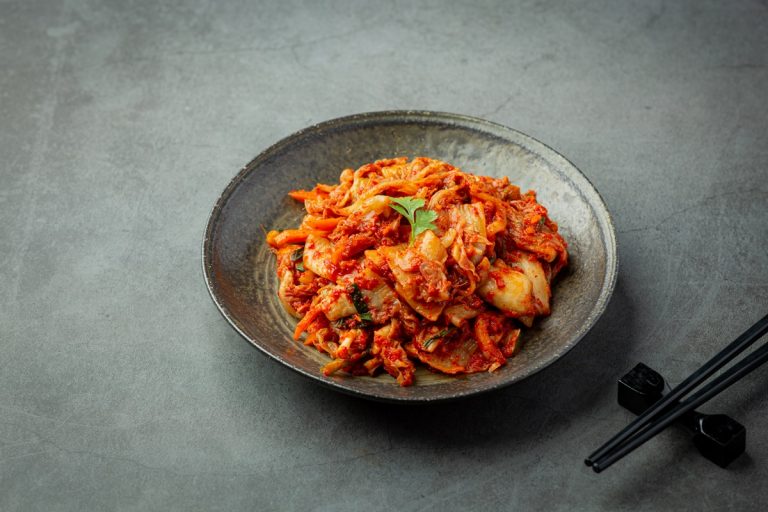 kimchi ready to eat in black plate