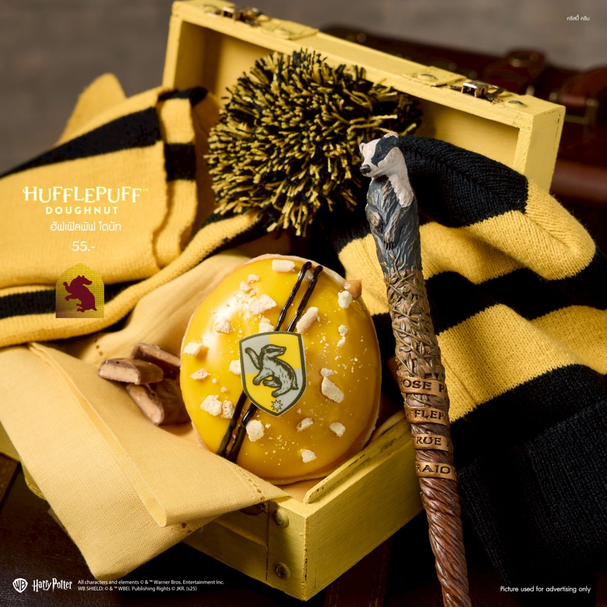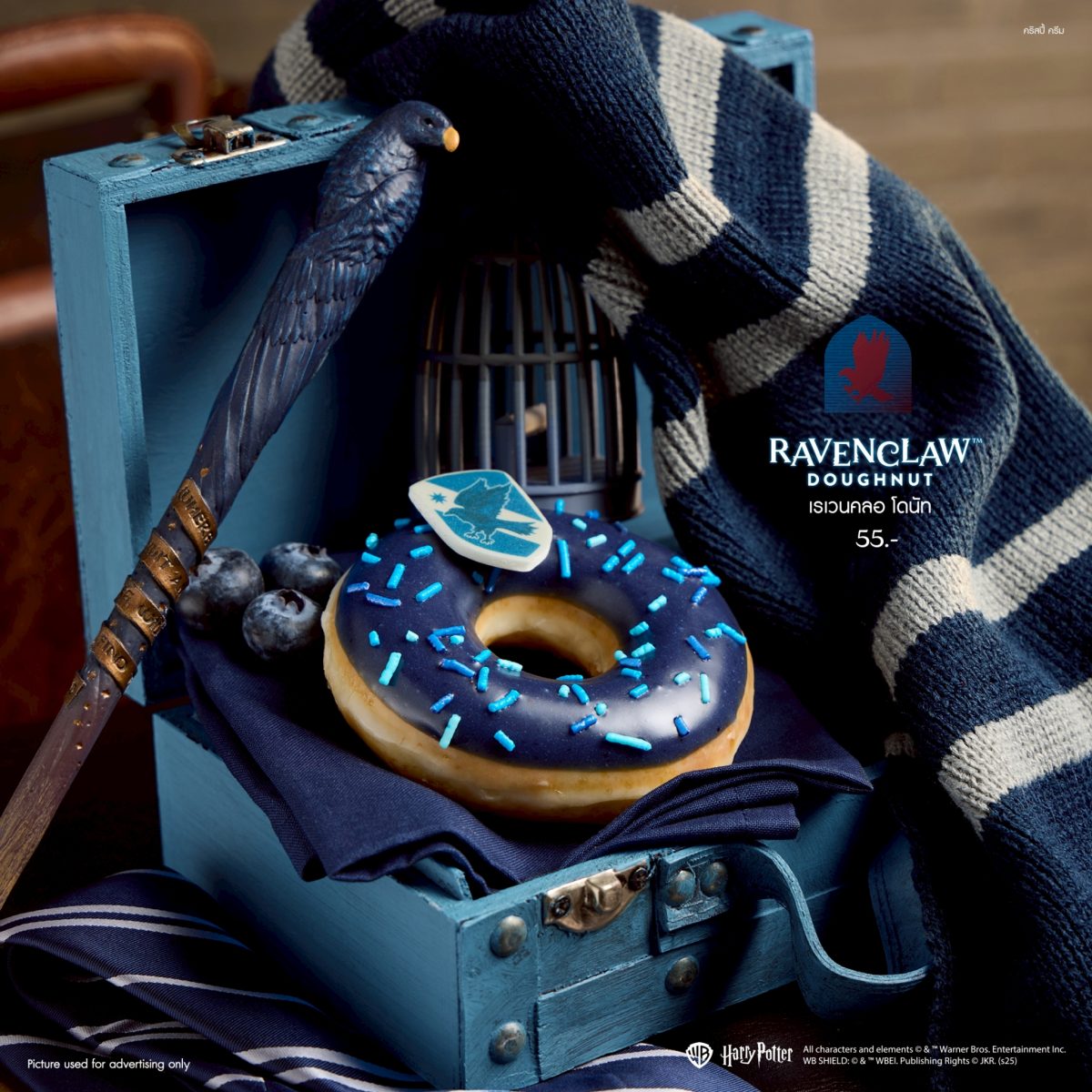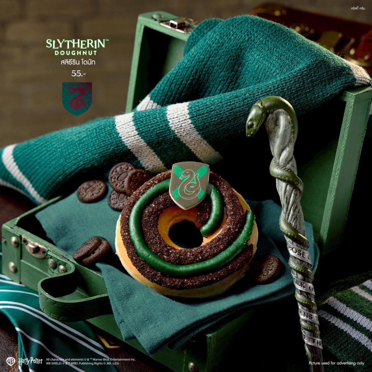 คริสปี้ ครีม (Krispy Kreme) โดนัทสูตรลิขสิทธิ์อันดับ 1 ที่ครองใจคนทั่วโลก ชวนเหล่าสาวกพ่อมดน้อยร่วมผจญภัยในดินแดนแห่งเวทมนตร์ ด้วยคอลเล็กชันสุดเอ็กซ์คลูซีฟ “Harry Potter™ Houses of Hogwarts™” โรงเรียนเวทมนตร์อันเลื่องชื่อ ผ่านโดนัท 4 แบบ 4 สไตล์ ที่ได้แรงบันดาลใจจากบ้านทั้งสี่ เริ่มที่ กริฟฟินดอร์ โดนัท (Gryffindor™ Doughnut) โดนัทสอดไส้คุกกี้    บัตเตอร์ครีมเนื้อเนียนรสชาติหอมมัน เคลือบไอซิ่งสีแดงสดคาดสีเหลืองทอง โรยหน้าด้วยบิสคอฟครัมเบิ้ลกรุบกรอบ พร้อมตราประจำบ้านกริฟฟินดอร์ ที่สื่อถึงความกล้าหาญตามแบบฉบับของแฮร์รี่และผองเพื่อน, สลิธีริน โดนัท (Slytherin™ Doughnut) โดนัทเนื้อนุ่มประดับด้วยช็อกโกวิปครีมเข้มข้น และช็อกโกแลตคุกกี้ชูการ์เบลนด์ เพิ่มเสน่ห์ด้วยกรีนบัตเตอร์ครีมสีเขียวมรกต และตราประจำบ้านสลิธีริน ตัวแทนแห่งความทะเยอทะยานและความมุ่งมั่น, เรเวนคลอ โดนัท (Ravenclaw™ Doughnut) โดนัทออริจินอล เกลซ เคลือบบลูเบอร์รีไอซิ่งสีฟ้าเข้ม รสเปรี้ยวอมหวาน โรยด้วยมิกซ์บลูสปริงเคิล และตราประจำบ้าน เรเวนคลอที่เปล่งประกายความเฉลียวฉลาด ปิดท้ายด้วย ฮัฟเฟิลพัฟ โดนัท (Hufflepuff™ Doughnut) โดนัทเคลือบไอซิ่งสีเหลือง สอดไส้บราวน์บัตเตอร์ทอฟฟี่คัสตาร์ดนุ่มละมุน ตกแต่งด้วยซอสช็อกโกแลต, คุกกี้ และตราประจำบ้านฮัฟเฟิลพัฟ สื่อถึง