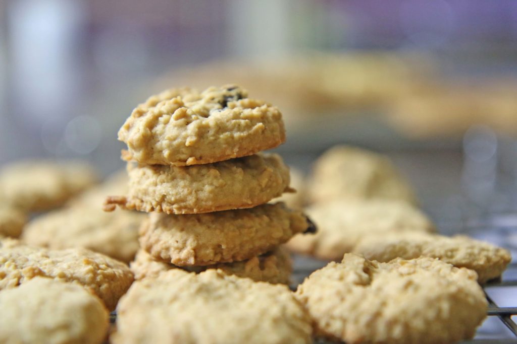 2.คุกกี้ข้าวโอ๊ต เวลาเคี้ยวจะรู้สึกได้ถึงเนื้อสัมผัสเพราะมีเม็ดข้าวโอ๊ต และลูกเกด โดยจะใช้สกู๊ปตักไอศกรีมตัก ทำให้ได้ลักษณะเป็นทรงกลม