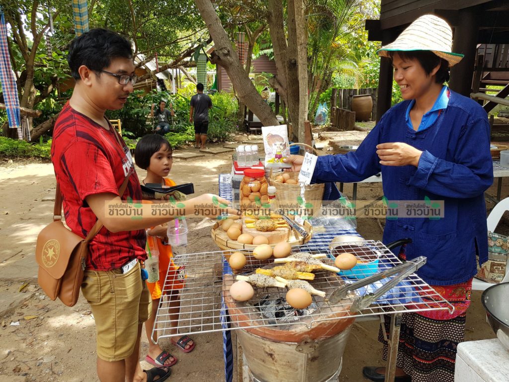 “อ้อยคั้นน้ำ 1 กอมีจำนวน 20 ต้น ปลูกในพื้นที่ 1 ไร่ ได้ 1,600 กอ เท่ากับ 32,000 ต้น ได้เริ่มทดลองขายข้าวจี่พันอ้อยครั้งแรก ในงานมหกรรม “พระแม่แห่งแผ่นดิน”