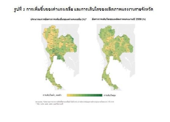 รูปที่ 2 การเพิ่มขึ้นของค่าแรงเฉลี่ย และการเติบโตของผลิตภาพแรงงานรายจังหวัด