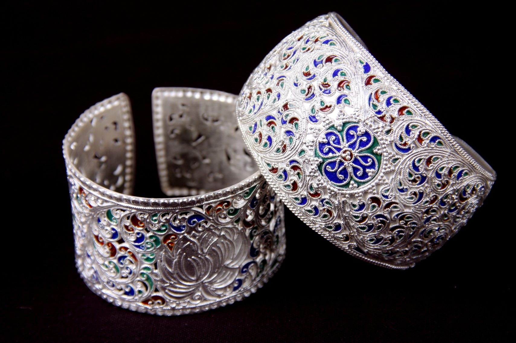 เครื่องเงินเมืองน่าน น่านคือหนึ่งในเมืองที่มีภูมิปัญญาการผลิตเครื่องเงินมาช้านาน เครื่องเงินน่านจึงไม่เหมือนกับที่อื่น โดยปัจจุบันแบ่งเป็น 2 แบบคือ แบบเงินดั้งเดิม และแบบชมพูภูคา (เครื่องเงินชาวเขา) โดยแบบดั้งเดิมจะมีรากมาจากการกวาดต้อนเทครัวช่างเงินและช่างทองจากฮ่อน้อย ฮ่อหลวง เมืองยอง และเชียงแสน มายังบริเวณบ้านประตูป่องของเมืองน่าน ในสมัยต้นรัตนโกสินทร์ จนเกิดการถ่ายทอดภูมิปัญญา ส่วนแบบชมพูภูคา เกิดจากการประยุกต์งานเงินโดยชาวเขาเผ่าเมี่ยน และเผ่าม้ง