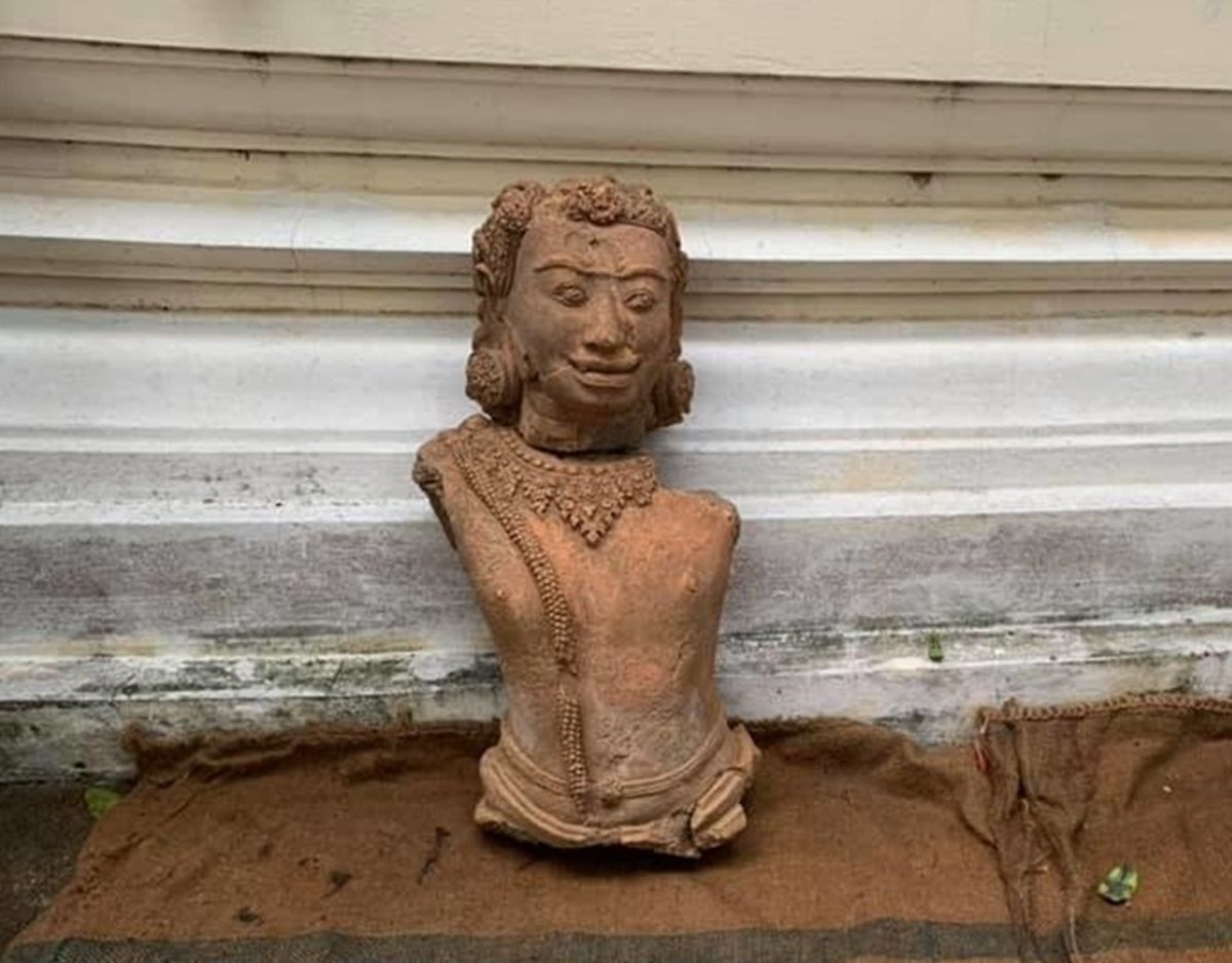 ได้พบเศียรพระ ตลอดจนพระพิมพ์ต่างๆ รวมไปถึงเครื่องถ้วยจีน ซึ่งจากการเดทอายุด้วยวิธีทางวิทยาศาสตร์กำหนดอายุได้ราวพุทธศตวรรษที่ 14-15 ตรงกับสมัยราชวงศ์ถังของจีน ทำให้เห็นถึงความสัมพันธ์ของบ้านเมืองนามทวารวดีกับราชสำนักจีน ตั้งแต่พุทธศตวรรษที่ 12 ซึ่งตรงกับสมัยราชวงศ์สุย โดยกษัตริย์ของทวารวดีได้ส่งเครื่องบรรณาการ ได้แก่ ไข่มุก งาช้าง และนอแรด ถวายแด่จักรพรรดิจีนในปี พ.ศ. 1181, 1183 และ 1192 ตามลำดับ โดยน่าจะมีคู่แข่งทางการค้ามี่ร่วมสมัยกันคืออีศานปุระและจามปา ซึ่งทั้ง 3 ต่างก็แย่งชิงอำนาจ รวมถึงแข่งขันกันทางเศรษฐกิจกันในภูมิภาคนี้กันมานานแล้ว