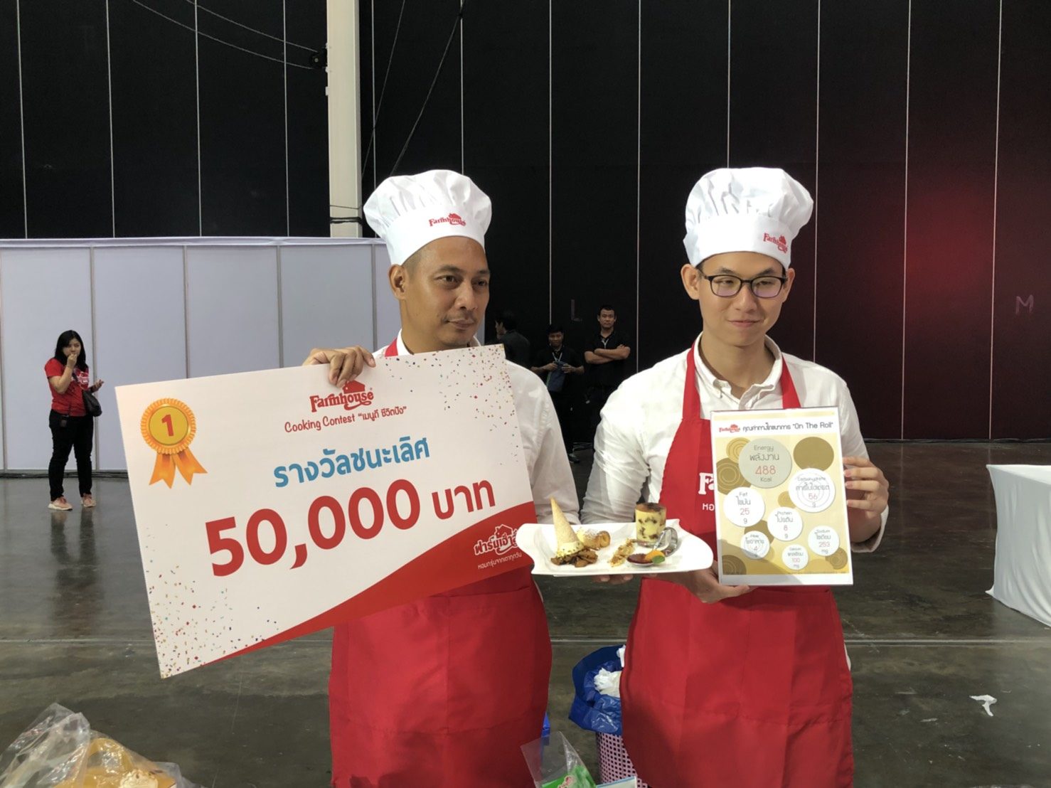 โดยสองหนุ่มที่คว้าชัยชนะในครั้งนี้ไปได้อย่าง “วรภัทร ศรีขจรเดช” เภสัชกร และ “คณพศ ธัญธนเจษฎาภา” ช่างภาพ จากทีม Duo กับเมนู “on the roll” ซึ่ง “วรภัทร” กล่าวว่า รู้สึกดีใจและตื่นเต้นที่ได้รางวัลชนะเลิศ ปกติไม่ใช่คนที่ทำอาหารเก่ง แต่ก็อยากจะมาลอง จึงพยายามเตรียมตัวมาให้ดีที่สุด