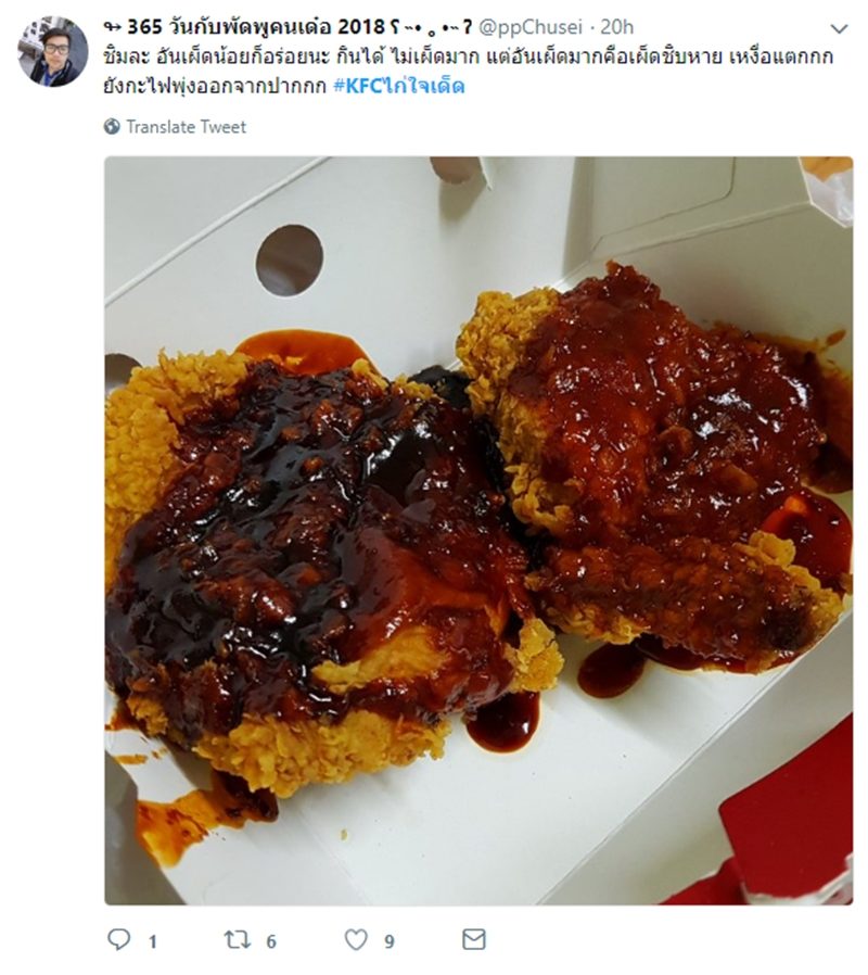 อีกหนึ่งเมนูที่ฮิตฮอตมาแรงในปีนี้ ที่จะไม่พูดถึงเห็นทีว่าจะไม่ได้ สำหรับเมนู ไก่เผ็ดเคเอฟซี ความฮิตของไก่เผ็ดมาจากการรีวิวของคนที่ได้ลองทานมาแล้ว ทำให้คนที่ยังไม่ลองทานอยากรู้ว่าจะเผ็ดสมคำร่ำลือจริงหรือเปล่า จนเกิดกระแสซื้อไก่เผ็ดจนแถวยาวเหยียด โดยเมนูนี้มีความพิเศษอยู่ที่ตัวซอส ที่ใช้ราดบนไก่ทอดร้อนๆ มีซอส 2 แบบให้เลือกทาน คือ “เผ็ดเด็กเด็ก” และ “เผ็ดดุดัน” ที่เผ็ดร้อนแรงสุดขั้ว